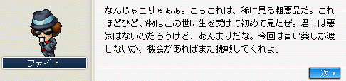 なんか、本題までが長くなってしまうなぁw メイプルの話。 今日は2時間半ほど狩り。 今の効率は 提灯 - Lv40(闇夜の松林) : 50.64%/h サイティ - Lv68(関係者以外出入禁止区域) : 50.16%/h ・・・と、並んだので、そろそろサイティに狩り場変更です。 Lv40中盤からの提灯ともお別れです。 夜狐の尾が手に入らなくなるのがちょっと残念なところ。 あ、そうそう。 最後の交換でついに、最低ランクが出ました。↓今日の狩り結果。